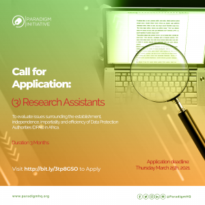March 16, 2021 by Communications Call for Applications: Research AssistantsAdvocacy, Digital Rights, ICTs