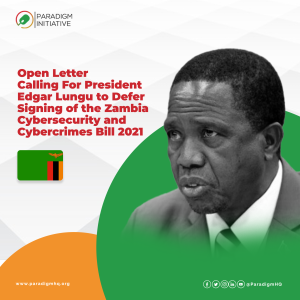 March 17, 2021 by Communications Open Letter Calling For President Edgar Lungu to Defer Signing of the Zambia Cybersecurity and Cybercrimes Bill 2021Advocacy, Digital Rights, ICTs, Internet Freedom