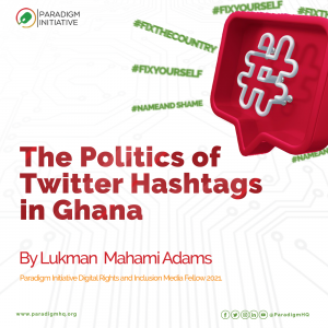 May 27, 2021 by Communications The Politics of Twitter Hashtags in Ghana. #FixTheCountry, #Fixyourself, #NameandshameAdvocacy, Digital Rights, DRIMF, Fellowship, Internet Freedom