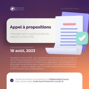 Paradigm Initiative (PIN), une organisation panafricaine de premier plan recherche des propositions (techniques et financières) d’individus ou organisations créatifs travaillant en Afrique pour développer unreprésentation audiovisuelle convaincante de son rapport 2022 sur les droits numériques et l’inclusion – Londa. Le rapport met en lumière l’état des droits numériques et de l’inclusion dans 24 pays africains.