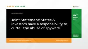 March 27, 2023 by Communications Joint Statement: States & investors have a responsibility to curtail the abuse of spywareDigital Rights, Internet Freedom, Open Letter, Press Release