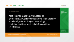 January 27, 2025 by Communications Net Right Coalition’s letter to the Malawian Communications Regulatory Authority (MACRA) on tracking disinformation and misinformation in MalawiOpen Letter