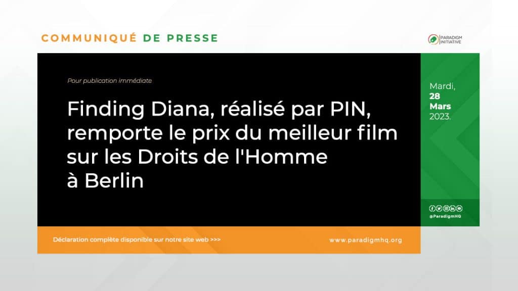 Mardi 28 mars 2023 : Le film de Paradigm Initiative (PIN), Finding Diana, a remporté le prix du meilleur film sur les droits de l’homme aux Berlin Shorts Awards de cette année.