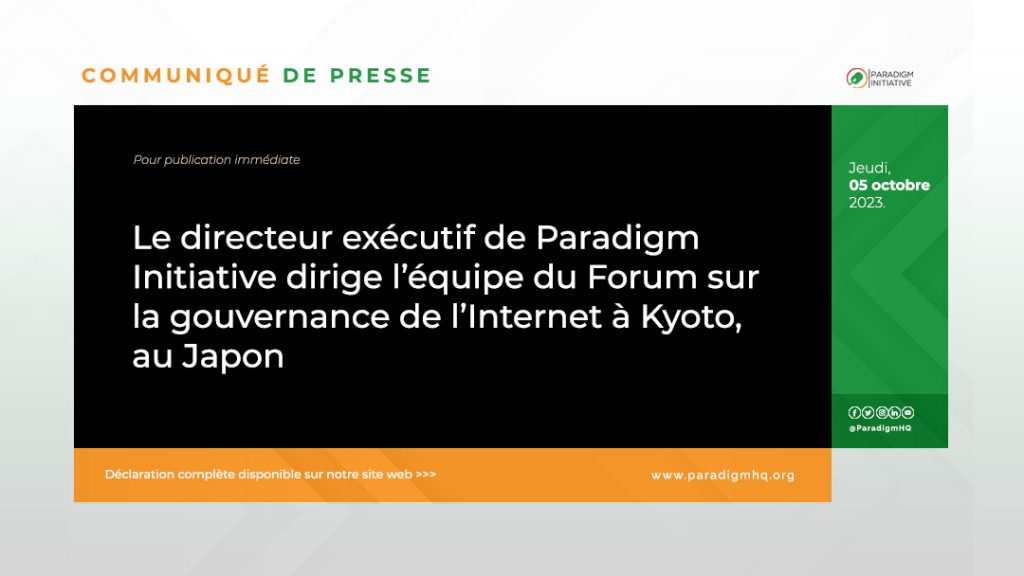 Le directeur exécutif de Paradigm Initiative (PIN), M. Gbenga Sesan, dirige une délégation au Forum sur la gouvernance de l’Internet (IGF) qui se tient cette année du 8 au 12 octobre à Kyoto, au Japon.