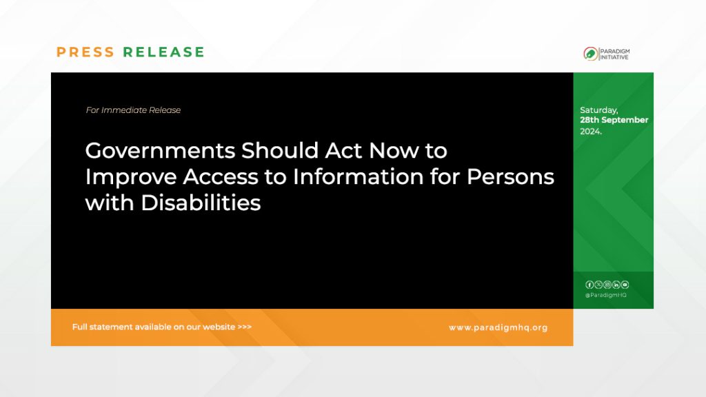 Le samedi 28 septembre 2024 : Alors que le monde commémore la Journée internationale de l’accès universel à l’information, Paradigm Initiative appelle les gouvernements des pays du Sud à améliorer l’accès des personnes handicapées aux technologies de l’information et de la communication afin d’améliorer l’accès à l’information. L’accès à l’information est un droit de l’homme mondialement reconnu pour tous, y compris les personnes handicapées. Cependant, la réalisation de ce droit pour les personnes handicapées est un défi, malgré les engagements pris dans l’Agenda 2030 pour le développement durable d’« atteindre en premier les plus éloignés » et de « ne laisser personne de côté ».