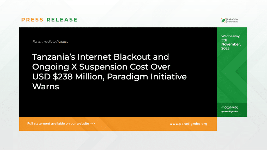 Paradigm Initiative (PIN) demeure préoccupée par la coupure d’internet en Tanzanie pendant la période électorale, la suspension continue de X (anciennement Twitter), ainsi que par le bridage de la bande passante signalé dans certaines régions du pays même après que la connectivité générale ait été rétablie le 3 novembre. Ces perturbations sont économiquement dévastatrices et profondément préjudiciables aux droits numériques. Cette défiance flagrante s’oppose aux appels de la Coalition pour les Droits sur Internet (Net Rights Coalition) et de la Commission Africaine des Droits de l’Homme et des Peuples à s’abstenir de couper l’internet, car cela constitue une atteinte à la liberté d’expression et à l’accès à l’information, conformément aux articles 9 et 19 de la Charte Africaine des Droits de l’Homme et des Peuples et au Pacte International relatif aux Droits Civils et Politiques, respectivement.