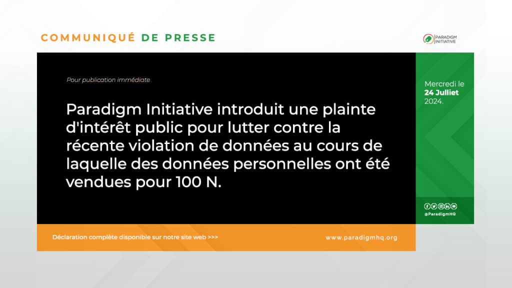 Mercredi le 24 juillet 2024 : Paradigm Initiative (PIN), une organisation non gouvernementale panafricaine qui défend les droits et l’inclusion numériques, a saisi la justice dans le cadre d’un litige d’intérêt public à la suite d’une récente violation de données au Nigeria, au cours de laquelle des données personnelles ont été vendues pour 100 nairas.