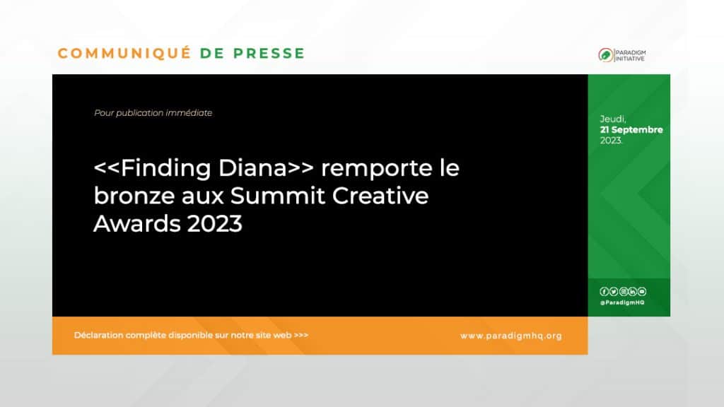 Finding Diana, le court-métrage produit par l’organisation panafricaine Paradigm Initiative (PIN), a remporté un nouveau prix. Le film a remporté le bronze dans la catégorie Service public lors de 2023 Summit Creative Awards.