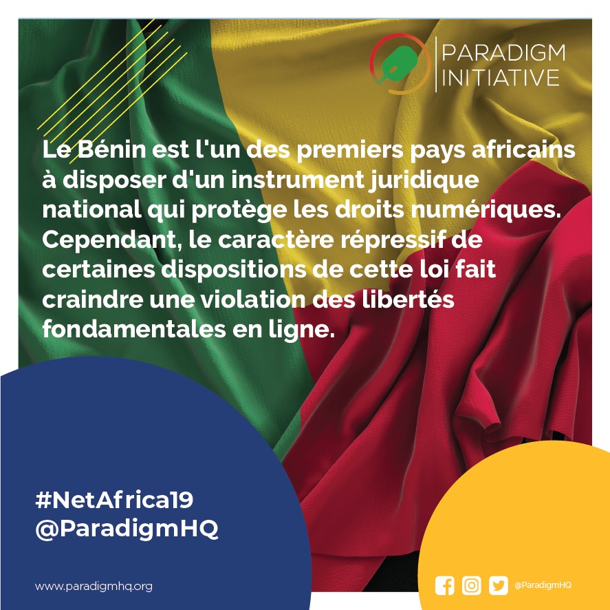 - Le Bénin est l’un des premiers pays africains à disposer d’un instrument juridique national qui protège les droits numériques. Cependant, le caractère répressif de certaines dispositions de cette loi fait craindre une violation des libertés fondamentales en ligne. #NetAfrica19 @ParadigmHQ