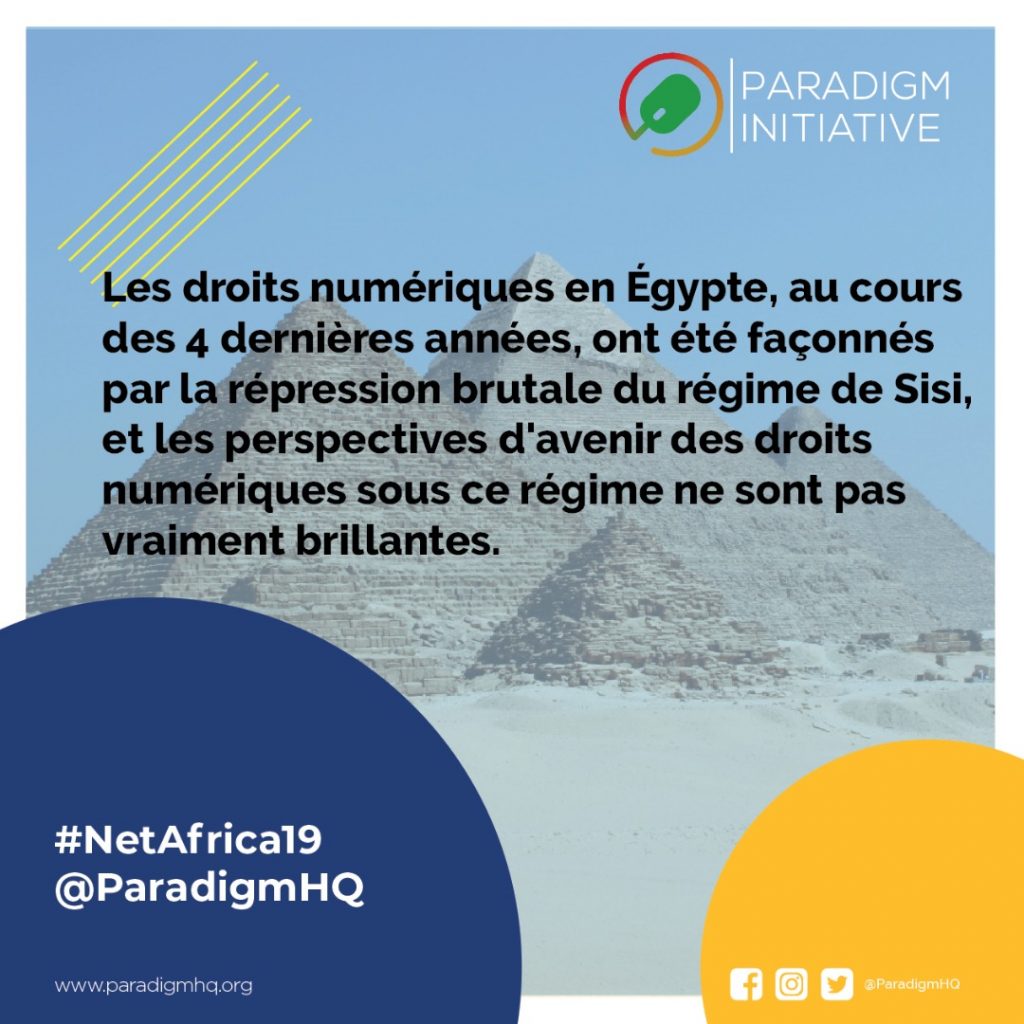 - Les droits numériques en Égypte, au cours des 4 dernières années, ont été façonnés par la répression brutale du régime de Sisi, et les perspectives d’avenir des droits numériques sous ce régime ne sont pas vraiment brillantes. #NetAfrica19 @ParadigmHQ