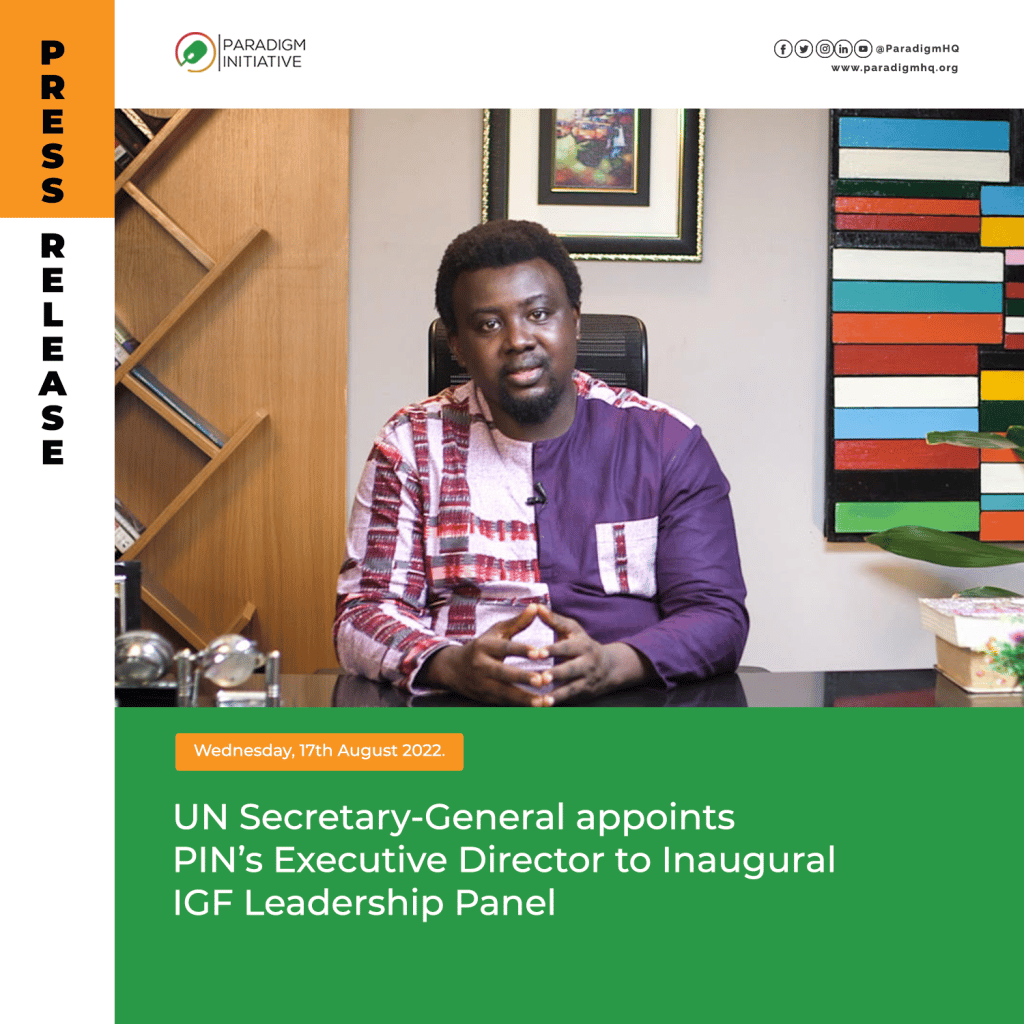 Lagos, Nigeria, 17th August, 2022: Paradigm Initiative’s (PIN) Executive Director, Mr. ‘Gbenga Sesan is among 10 high-level and eminent persons appointed by the United Nations Secretary-General to serve on his inaugural Internet Governance Forum (IGF) Leadership Panel.