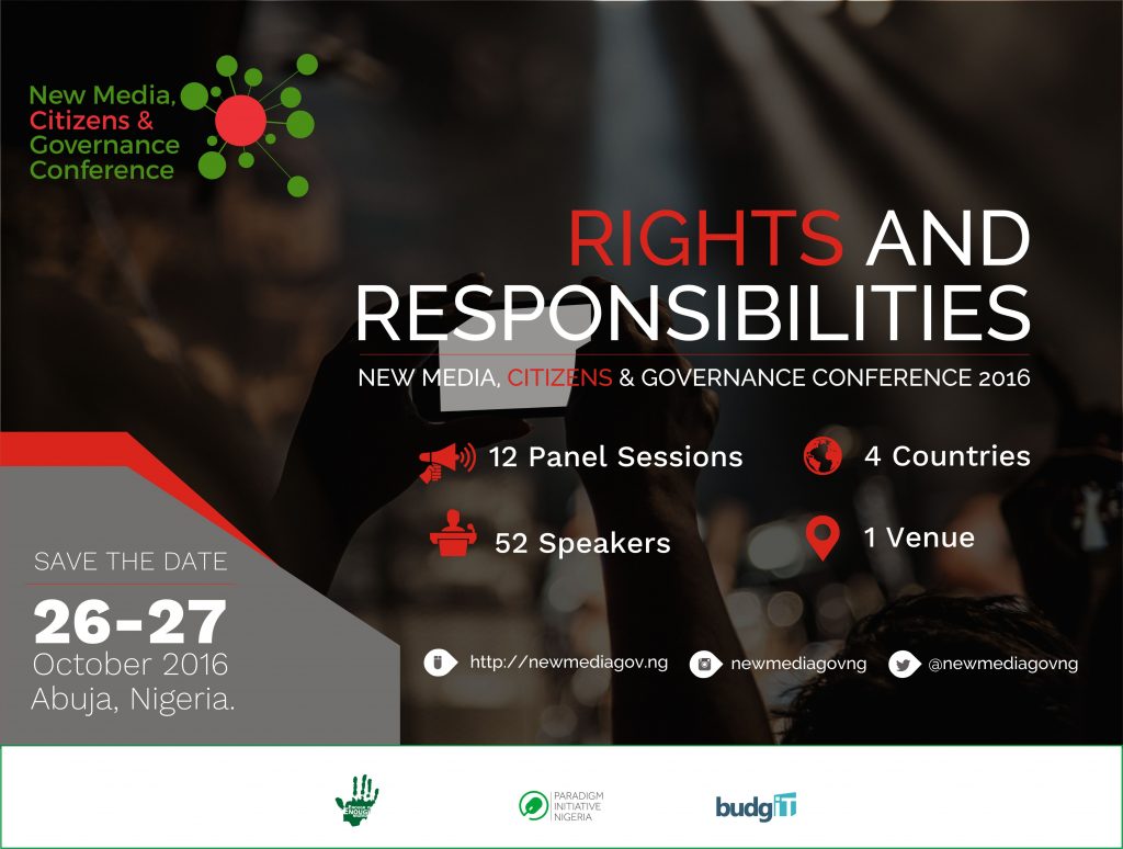 EiE Nigeria, Paradigm Initiative Nigeria and BudgIT invite you to the ‘New Media, Citizens & Governance Conference’ from Wednesday, October 26 – Thursday, October 27 in Abuja.