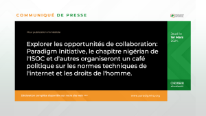 March 1, 2024 by Communications Explorer les opportunités de collaboration : Paradigm Initiative, le chapitre nigérian de l’ISOC et d’autres organiseront un café politique sur les normes techniques de l’internet et les droits de l’hommePress Release