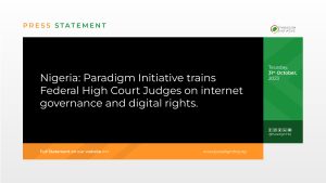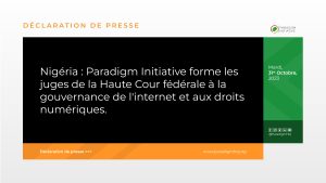 October 31, 2023 by Communications Nigéria : Paradigm Initiative forme les juges de la Haute Cour fédérale à la gouvernance de l’internet et aux droits numériques.Press Release