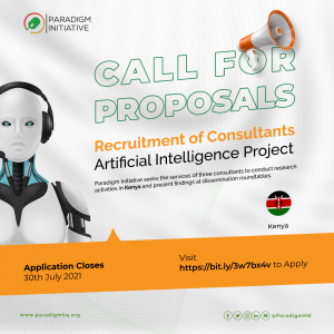 July 21, 2021 by Communications Call for Proposals: Recruitment of Consultants Artificial Intelligence Project – August 2021 – October 2021Digital Rights