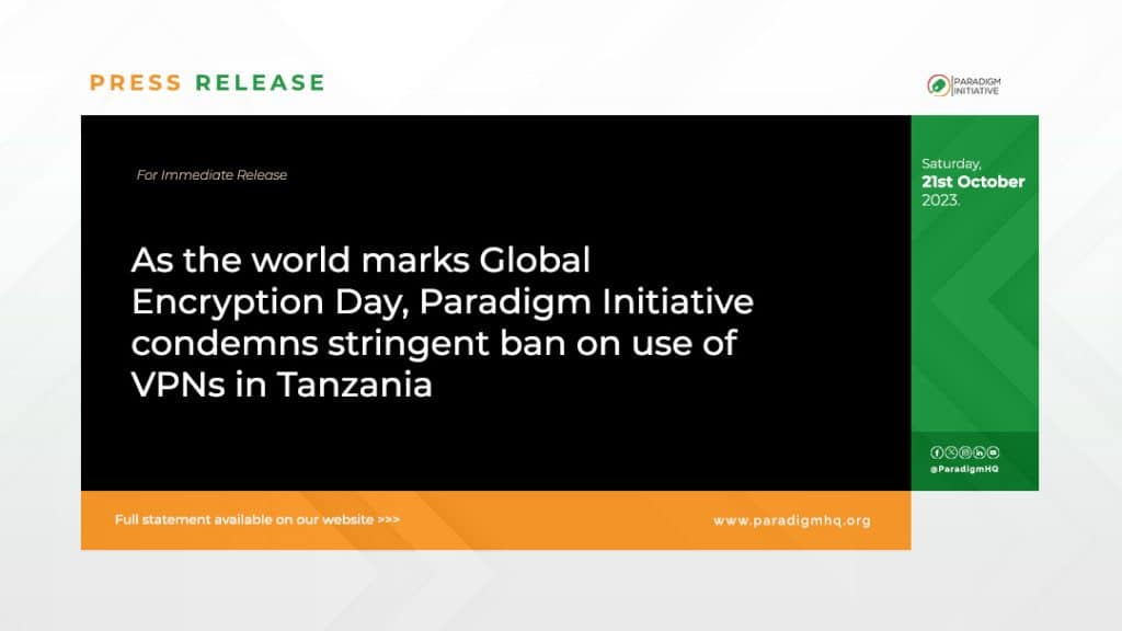 As countries across the world commemorate the Global Encryption Day today, Paradigm Initiative (PIN) condemns the stringent ban on using Virtual Private Networks (VPNs) in Tanzania which undermines the rights of Tanzanian citizens to access information, communicate securely, and express themselves freely online. PIN believes that VPNs are a key enabler of human rights online and are a vital defense against censorship
