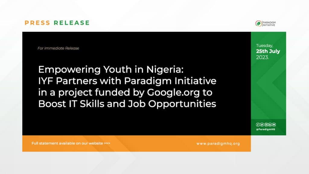 Tuesday, July 25th, 2023, Lagos, Nigeria: A collaboration between International Youth Foundation (IYF) and Paradigm Initiative funded by Google.org which aims to equip 300 young Nigerians with the necessary skills to secure job opportunities in the Information and Technology (IT) sector has kicked off.