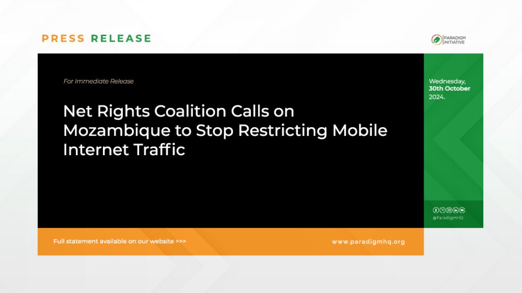 Wednesday, October 30, 2024: We, the Net Rights Coalition (NRC), are appalled by the confirmed disruption to mobile internet traffic in Mozambique on October 25 and 26, 2024, in response to protests after the announcement of the results of the General elections held on October 9, 2024. Mozambique announced the results of the General Elections on October 24, 2024, amid concerns from Observer missions of “irregularities during counting and unjustified alteration of election results at polling stations and district level.”