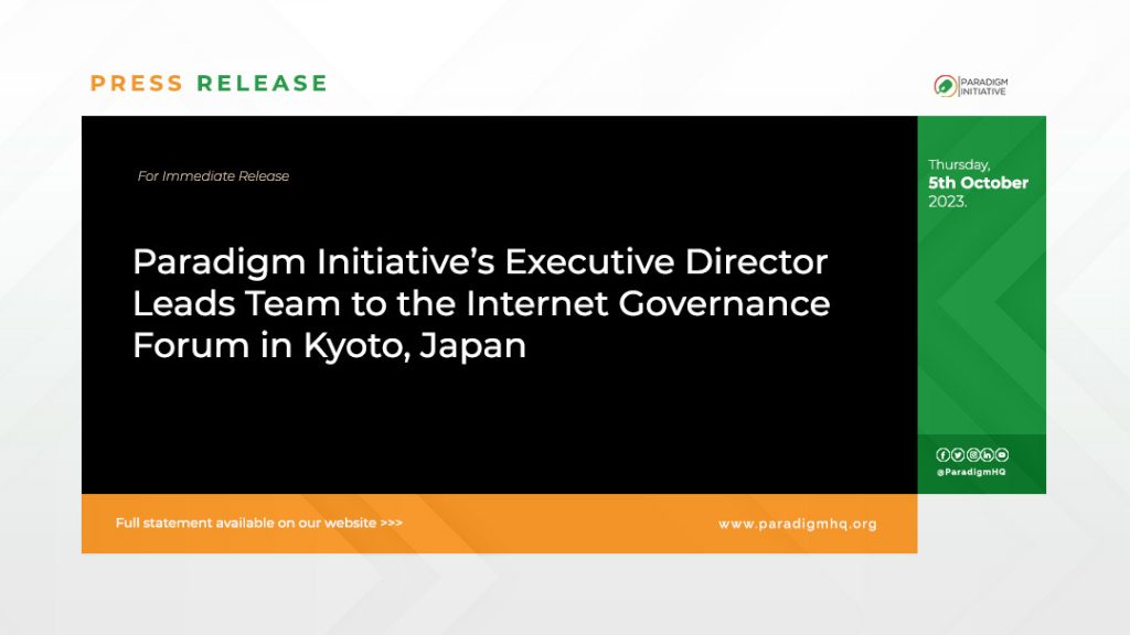 Paradigm Initiative’s (PIN) Executive Director, Mr. ‘Gbenga Sesan is leading a delegation to this year’s Internet Governance Forum (IGF) which runs from October 8th to 12th in Kyoto, Japan.
