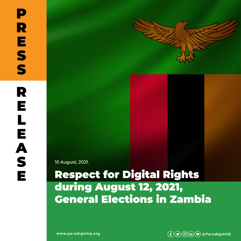 Paradigm Initiative (PIN) is a non-profit social enterprise that builds ICT-enabled support systems and advocates for digital rights and inclusion in Africa. We note that the nation of Zambia will be holding general elections on August 12, 2021 and are concerned about the protection of human rights.