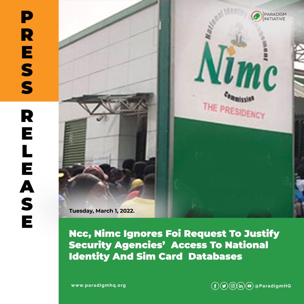 Two civil society organizations, Paradigm Initiative (PIN) and Ikigai Innovation Initiative (Ikigai Nation) sent a Freedom of Information request to the National Identity Management Commission (NIMC) and the Nigerian Communication Commission (NCC). In the letter dated 11th February 2022 the organisations queried the decision of the NIMC and NCC to grant certain security agencies in Nigeria, unfettered access to their databases. NCC and NIMC have statutory mandates to maintain the National identity and sim card database respectively. Although both organisations acknowledged receipt of the request on February 15, 2022, none of them is yet to respond to the questions asked