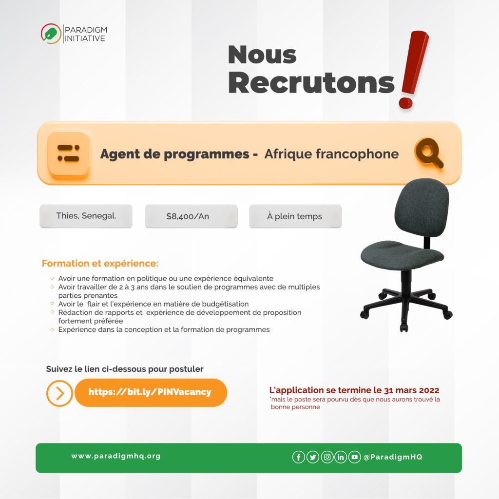 Le candidat retenu doit résider à Thiès, au Sénégal.