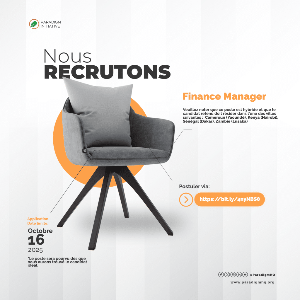 Paradigm Initiative (PIN) recherche un Responsable Financier expérimenté pour assurer un leadership et une supervision financiers stratégiques dans six pays (Cameroun, Kenya, Nigéria, Sénégal, Zambie et Zimbabwe). Le Responsable Financier garantira la santé financière, l’intégrité et la durabilité de l’organisation en pilotant la planification, la budgétisation, le reporting et la conformité.