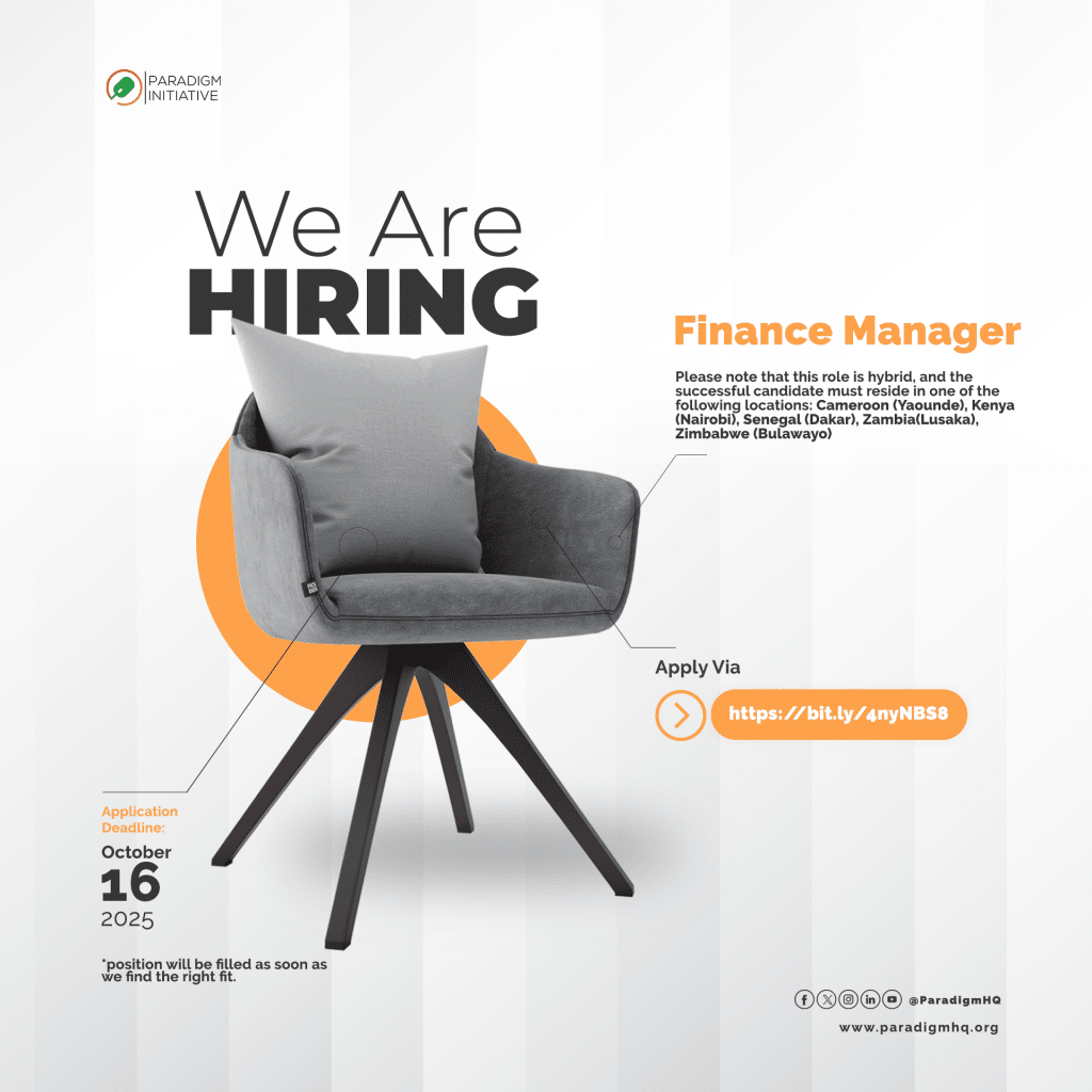 Paradigm Initiative (PIN) seeks an experienced Finance Manager to provide strategic financial leadership and oversight across six countries (Cameroon, Kenya, Nigeria, Senegal, Zambia, and Zimbabwe). The Finance Manager will ensure the organisation’s financial health, integrity, and sustainability by driving planning, budgeting, reporting, and compliance.